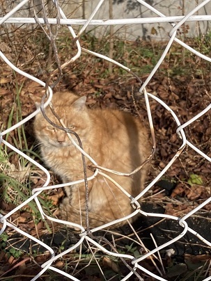 枯葉ばかりの陽だまりに 猫ちゃんです